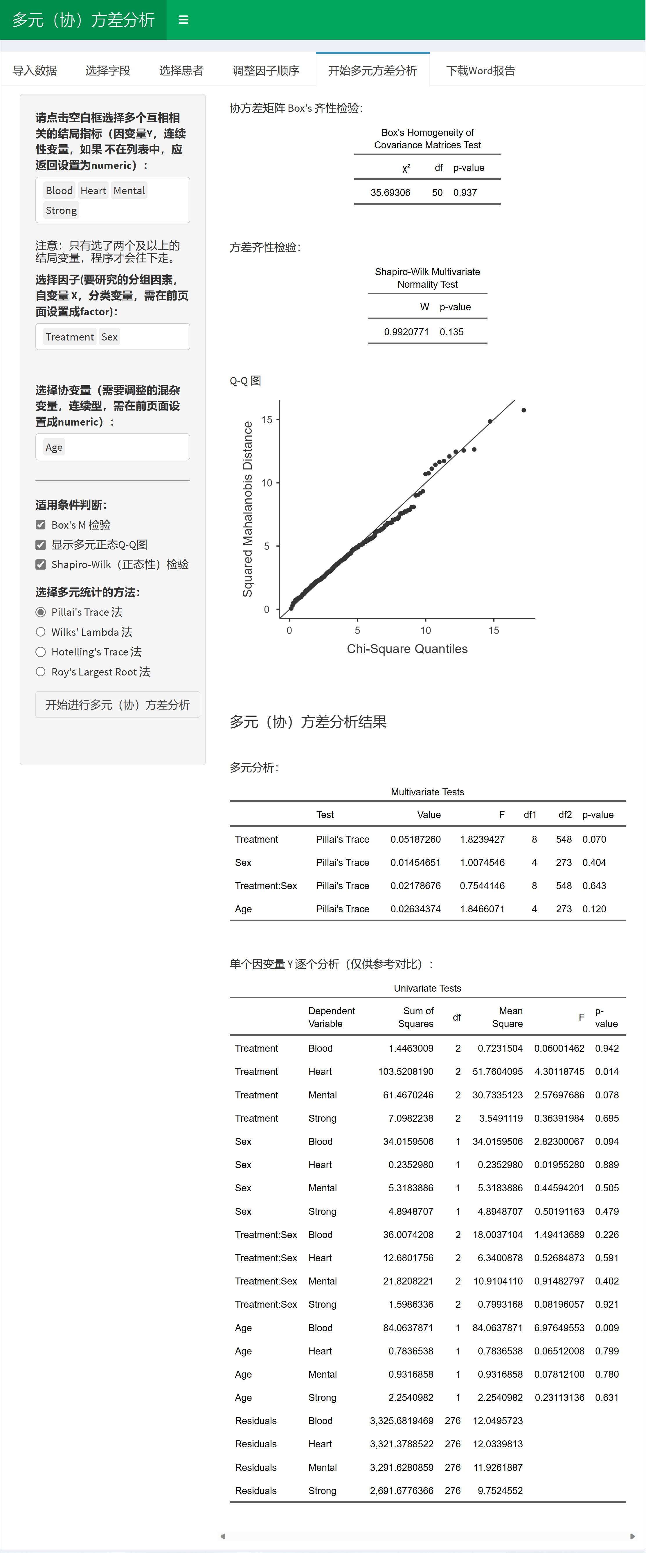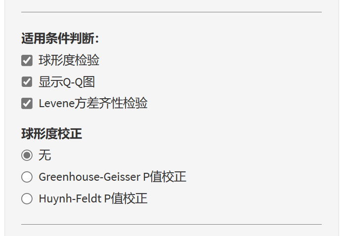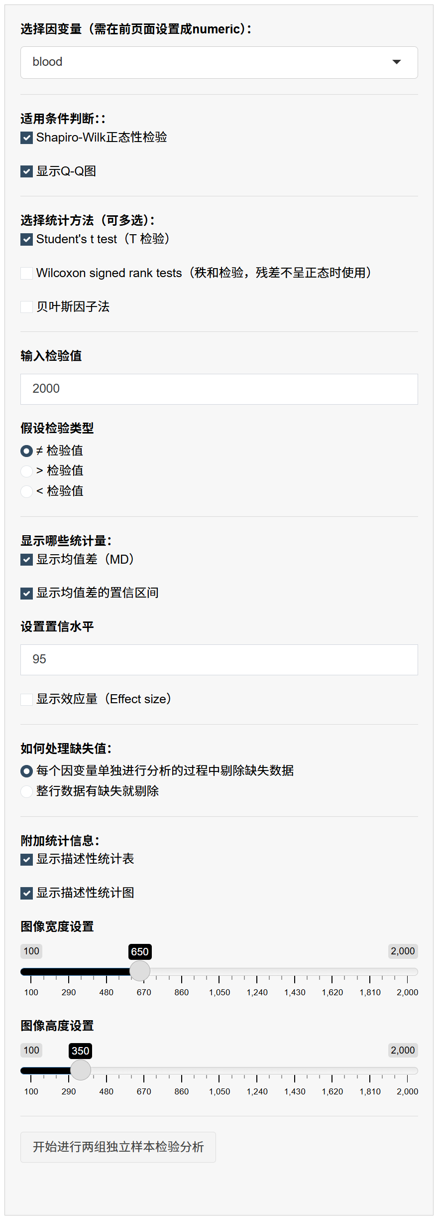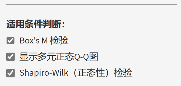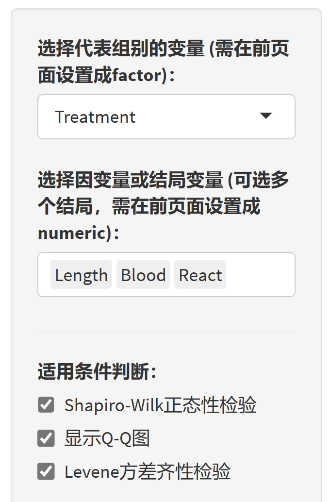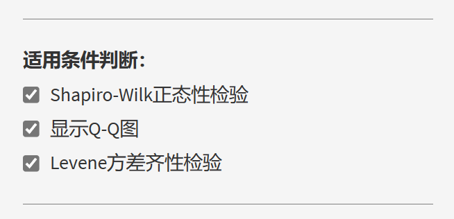 - Q–Q 图:可视化正态性(默认开,与上项联动)。