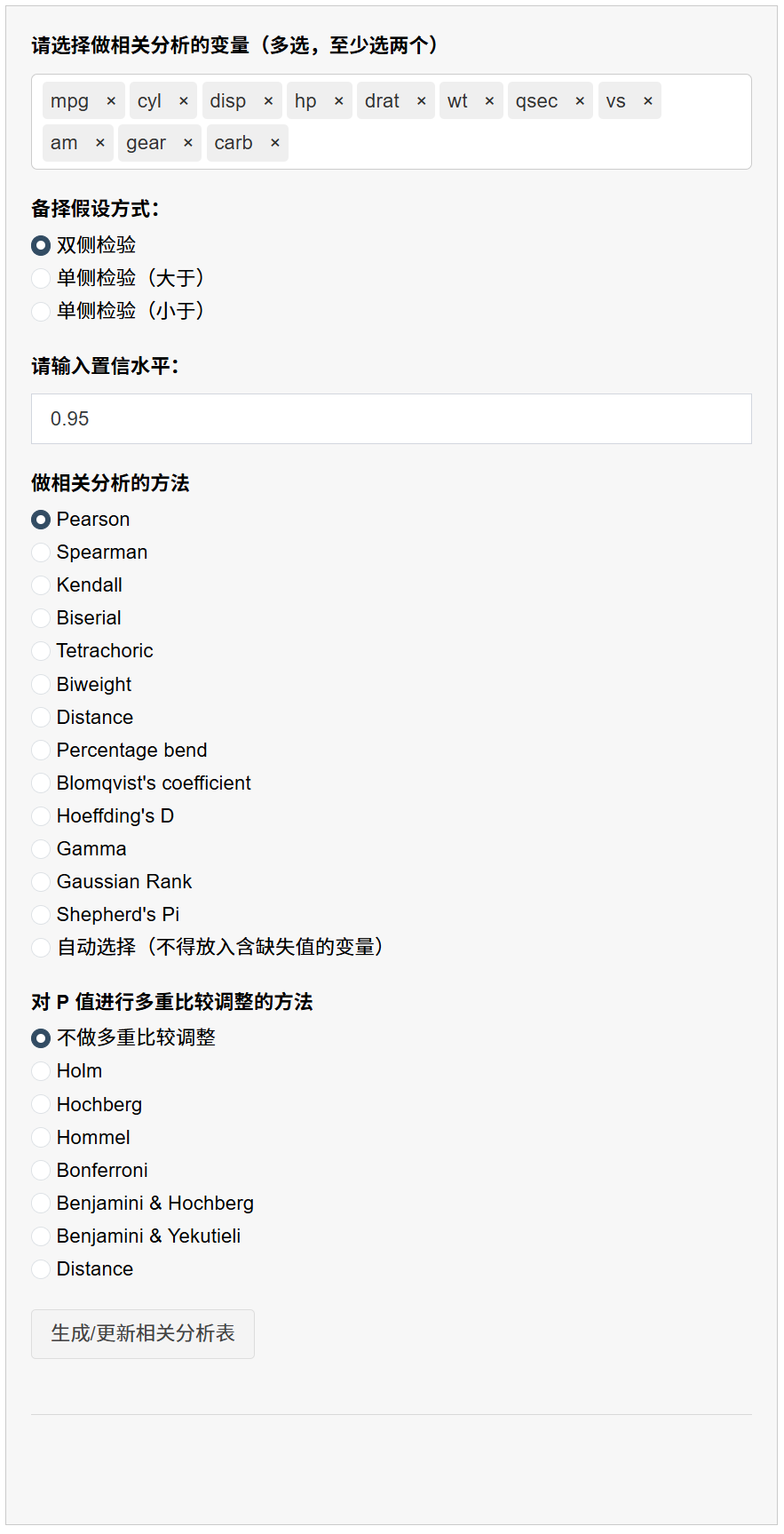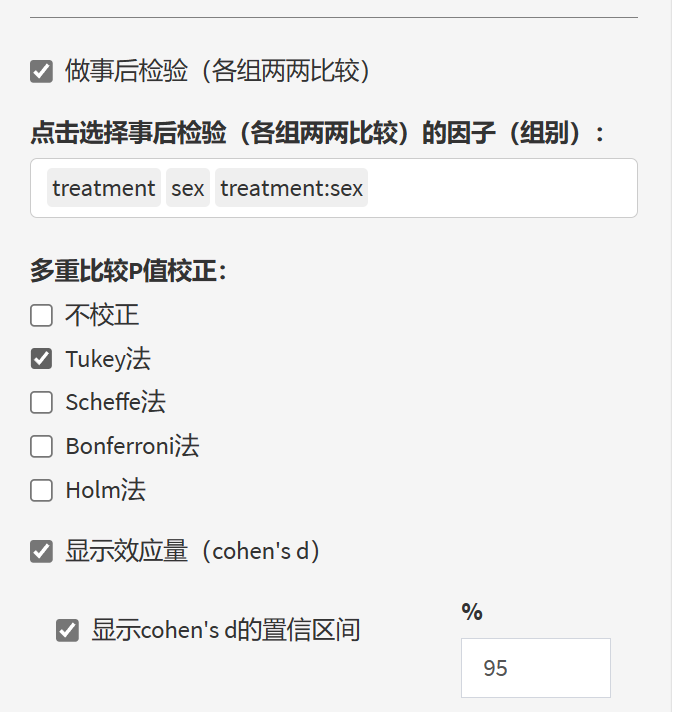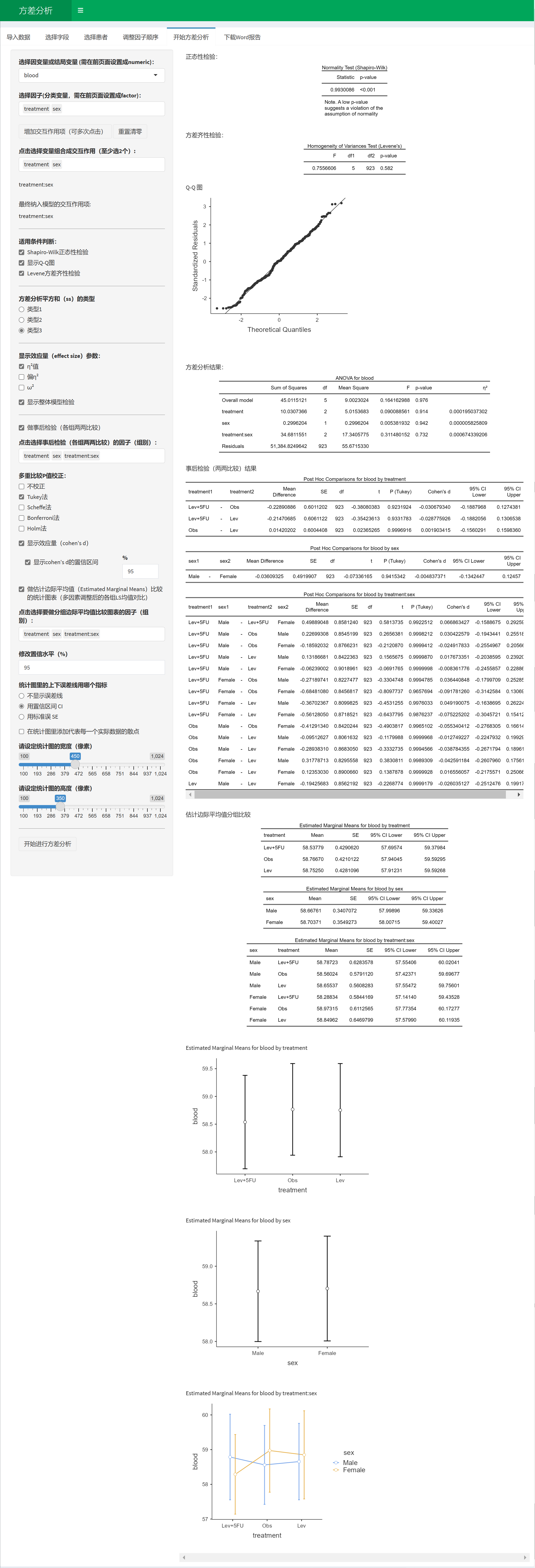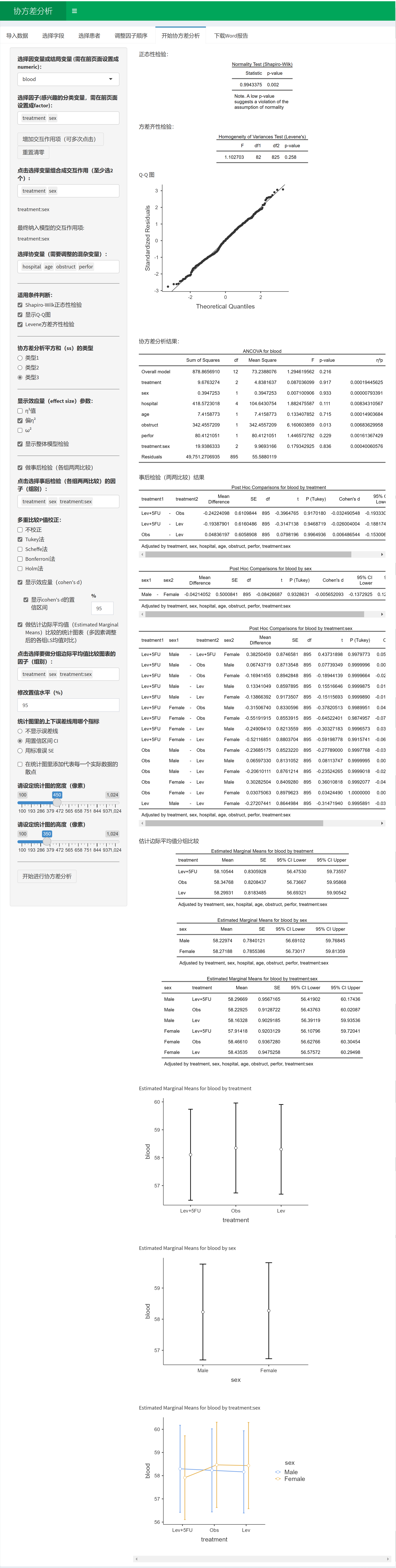 - Q–Q 图:可视化正态性(默认开,与上项联动)。