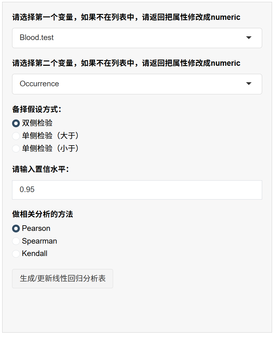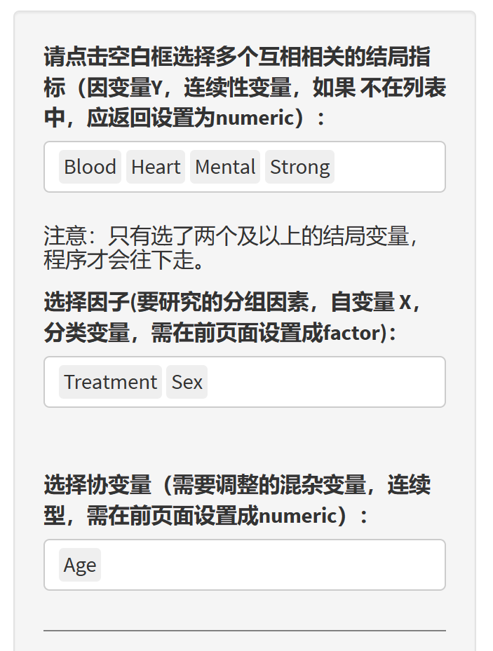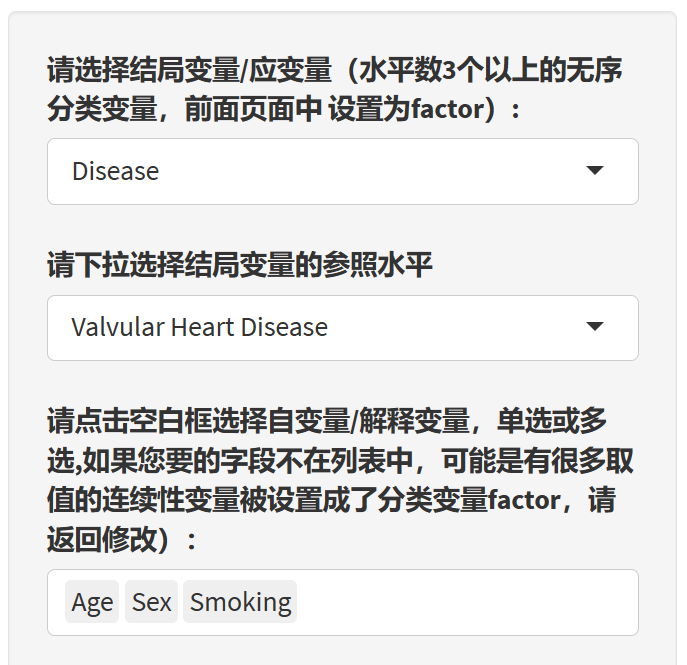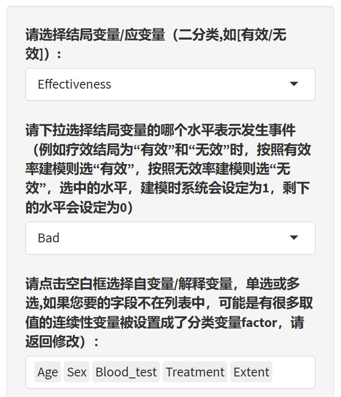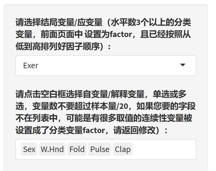 在 “选择因变量或结局变量 Y” 下拉框中选择。- 必须是