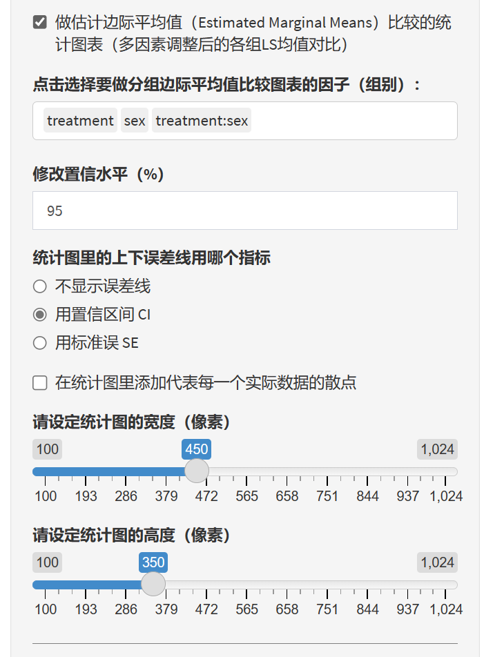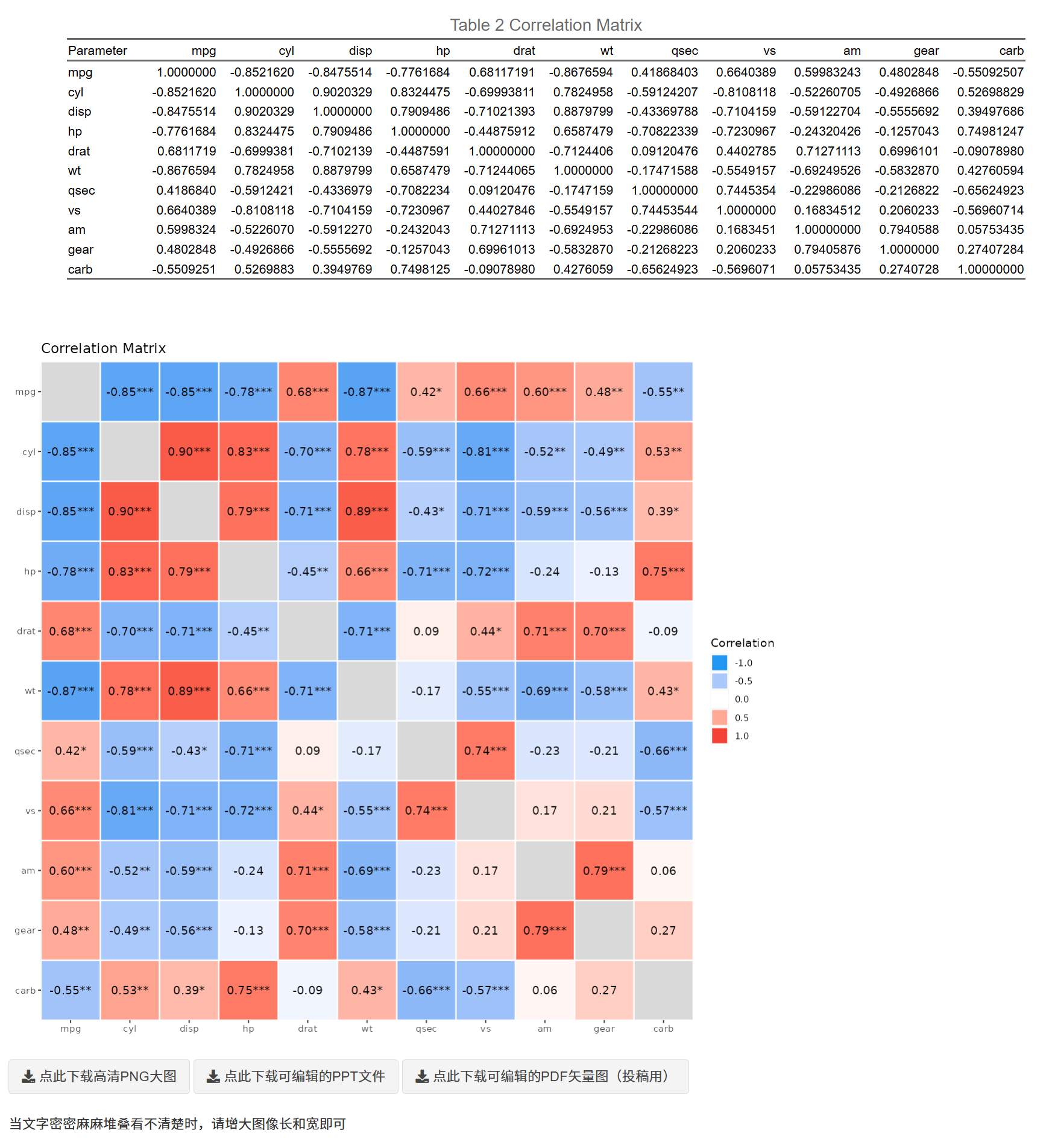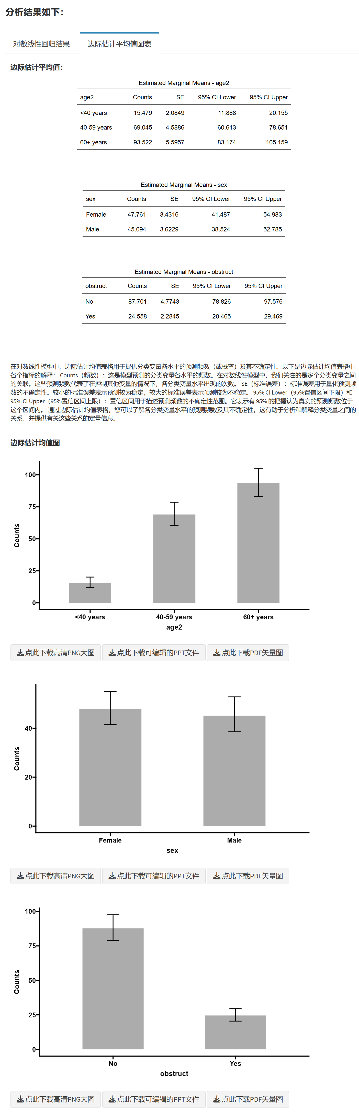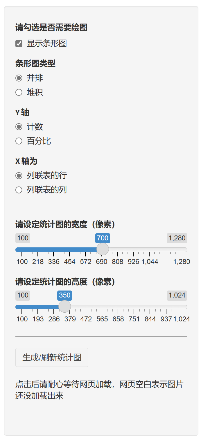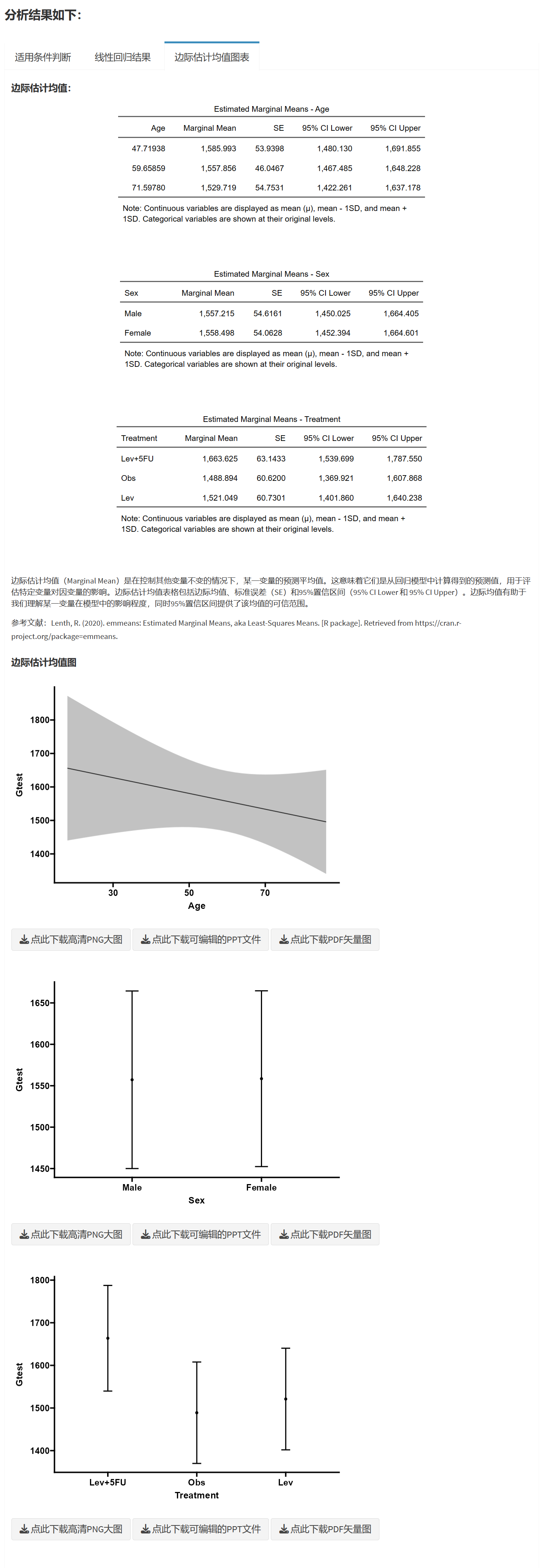 - 描述性统计图:默认开启,可调 图像宽度/高度;图下方提供下载按钮(PNG/PPT/PDF)。
