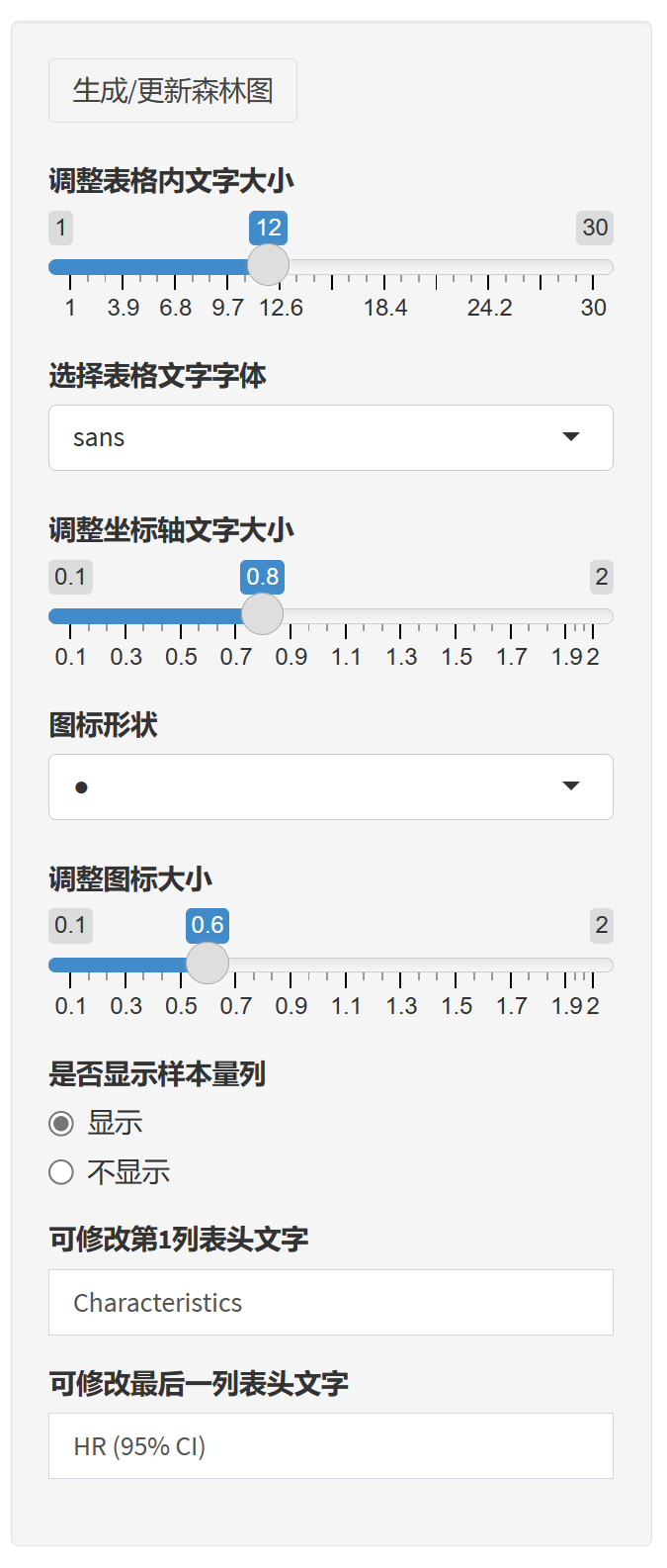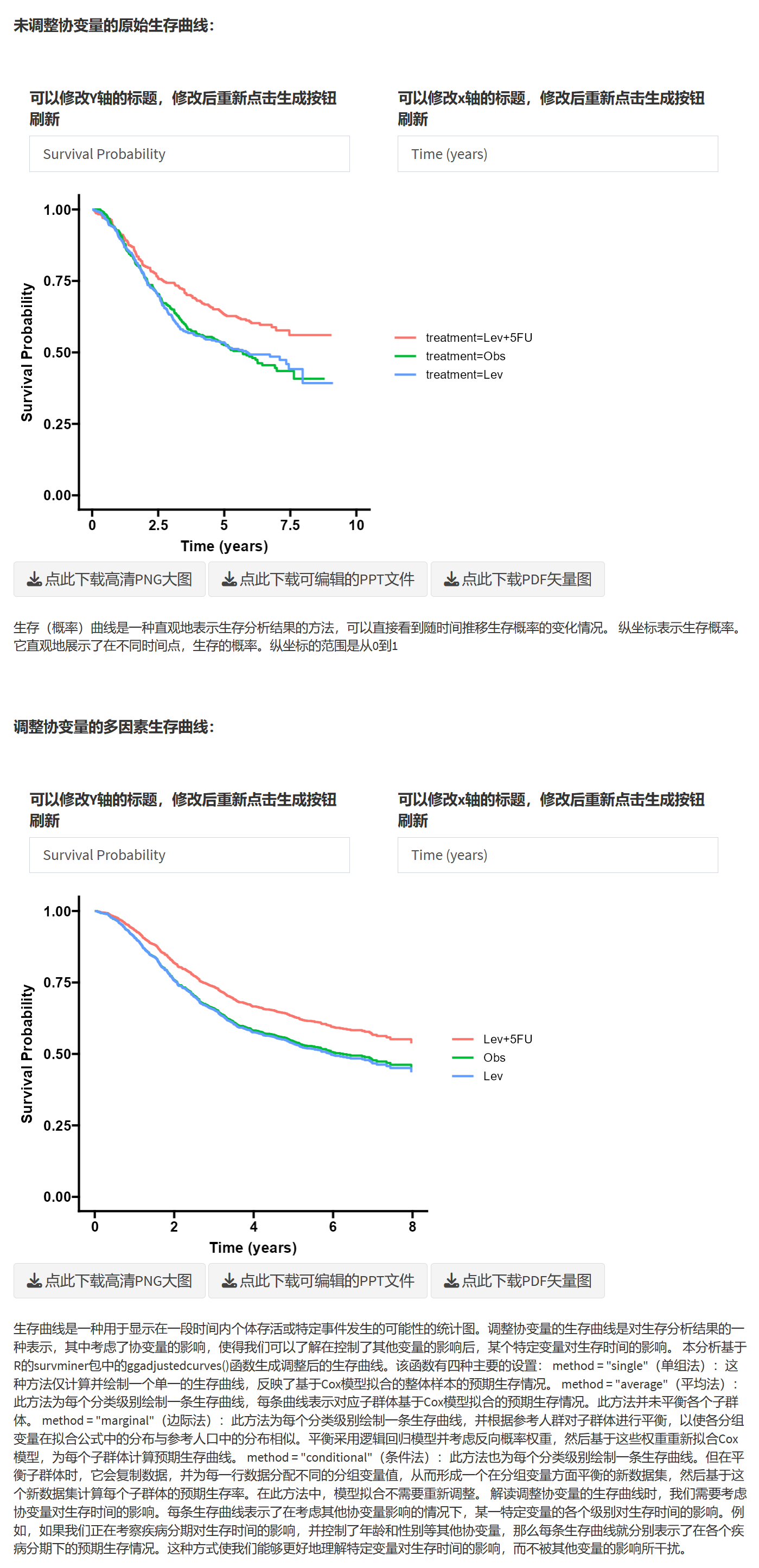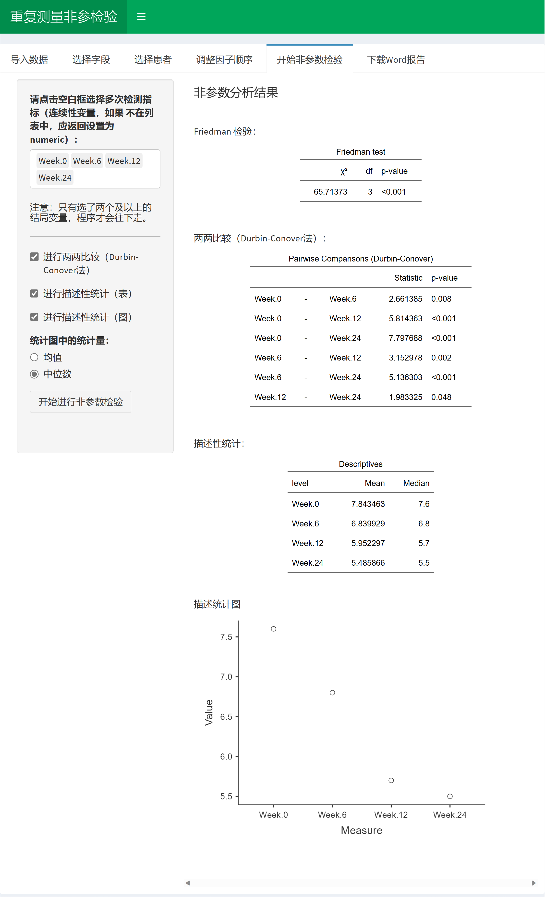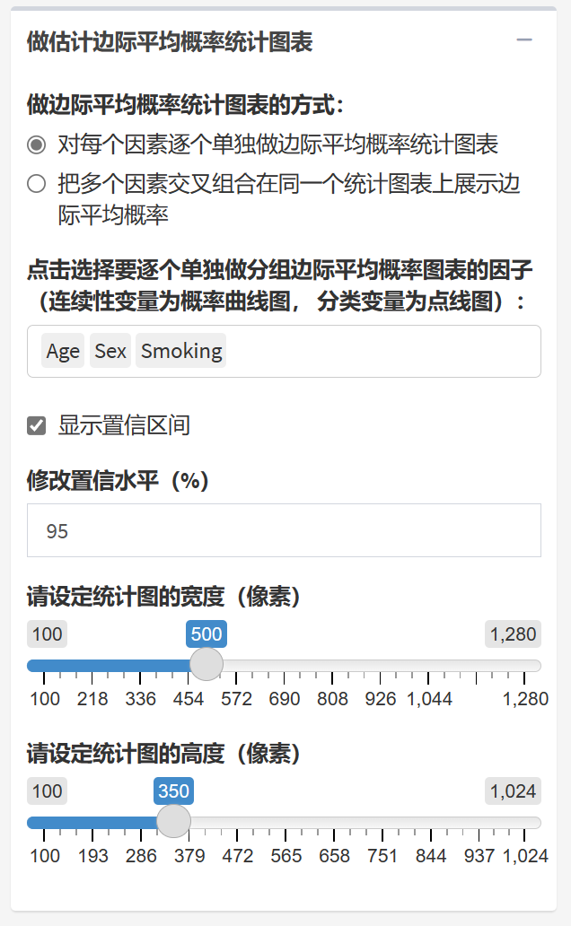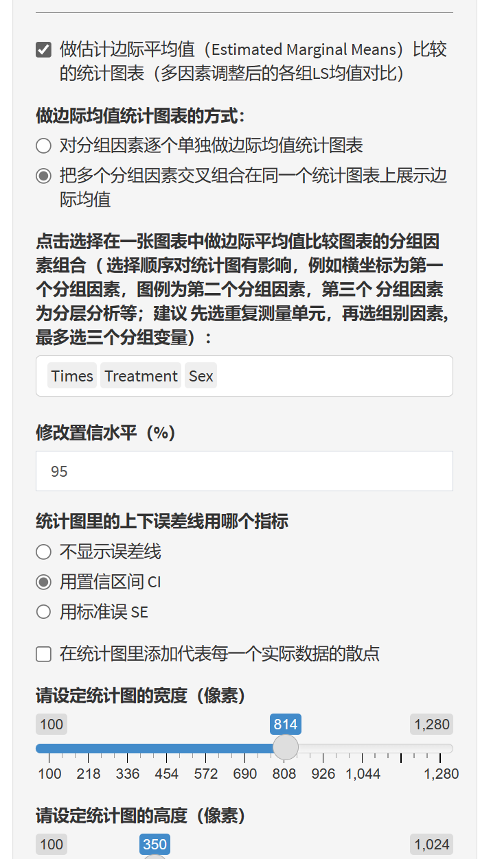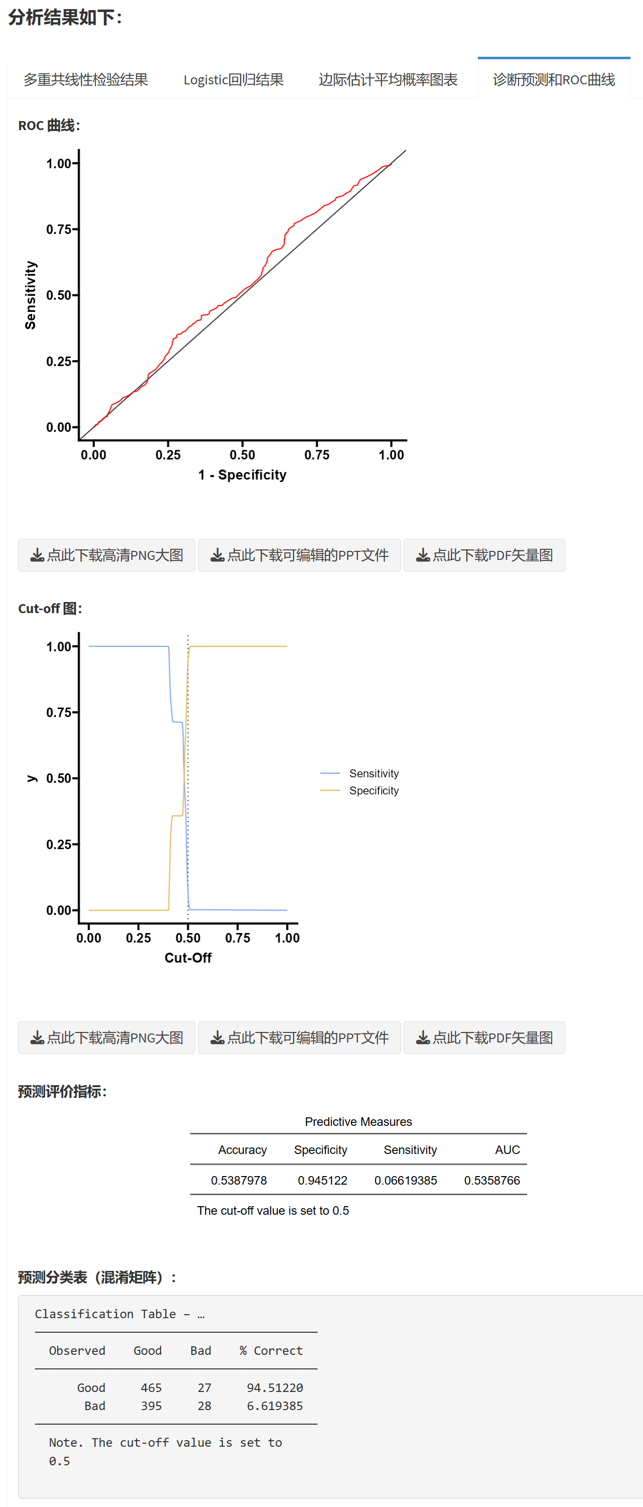 - 描述性统计图:默认开启,可调 图像宽度/高度;图下方提供下载按钮(PNG/PPT/PDF)。