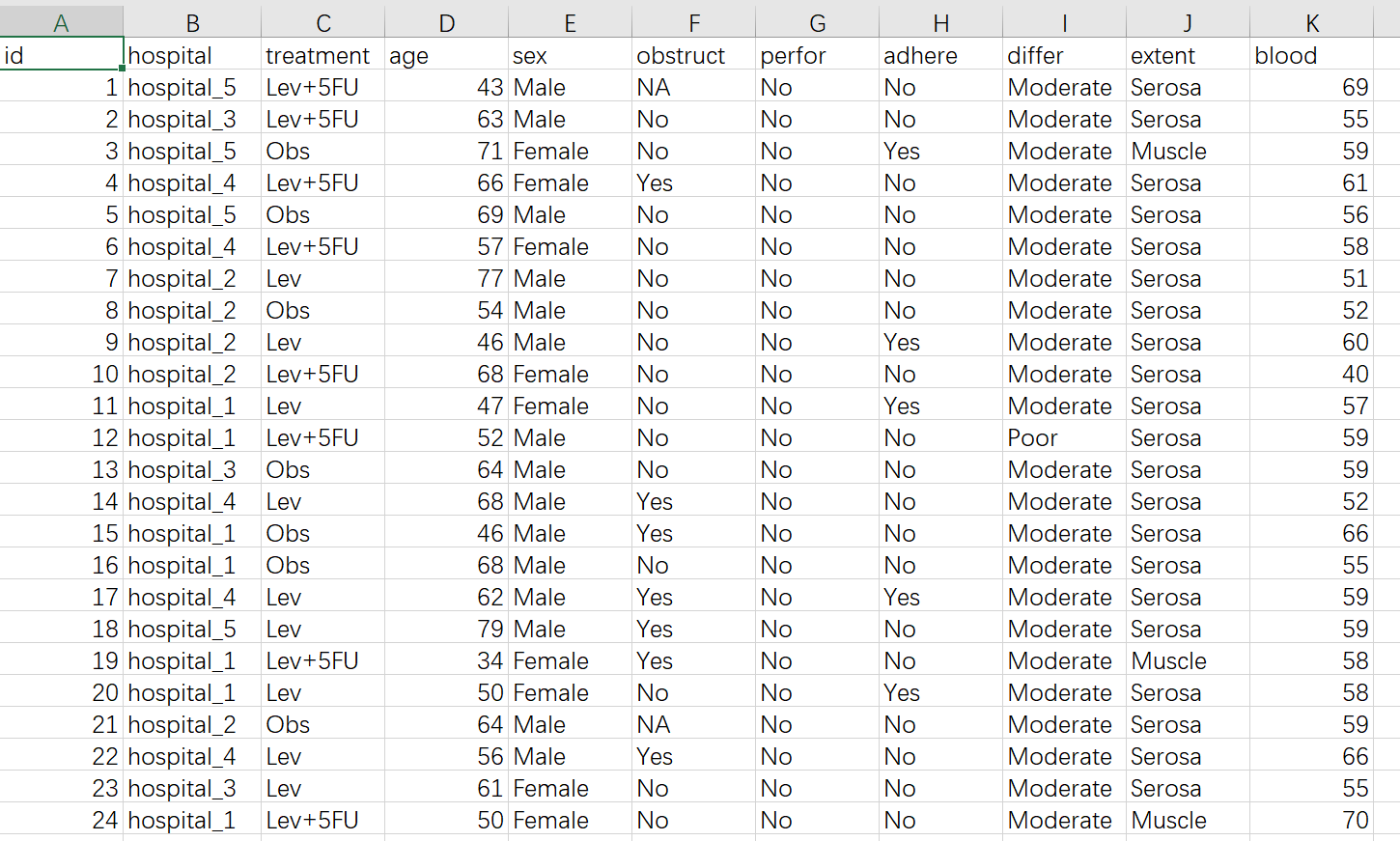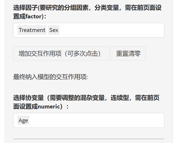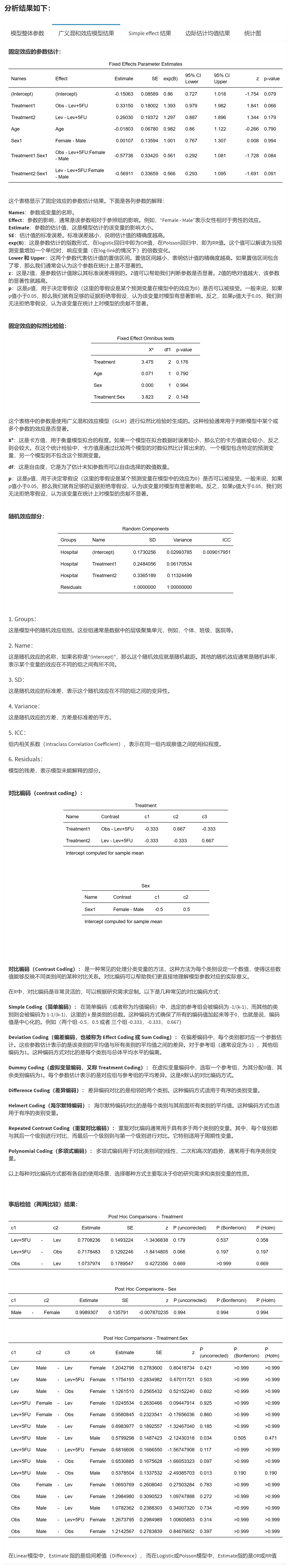 解释变量(自变量):例如上图中的Age、Sex、Treatment等等一系列指标,应当设置成固定效应
