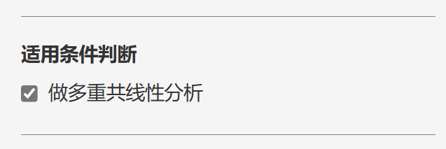 在”适用条件判断”部分,勾选”做Bartlett’s球形检验”和”做KMO抽样适合性检验”,以确定数据集是否适合进行主成分分析。