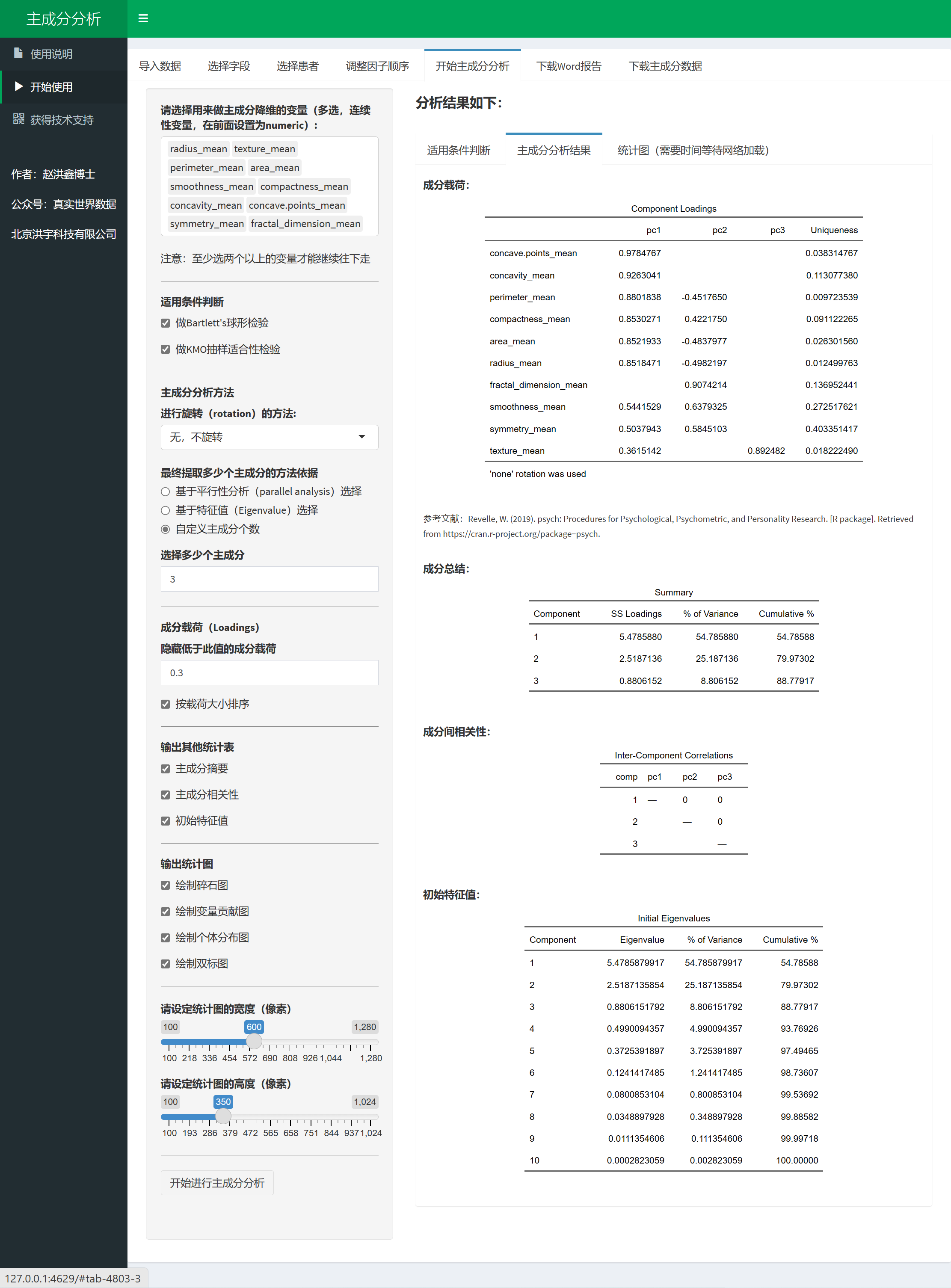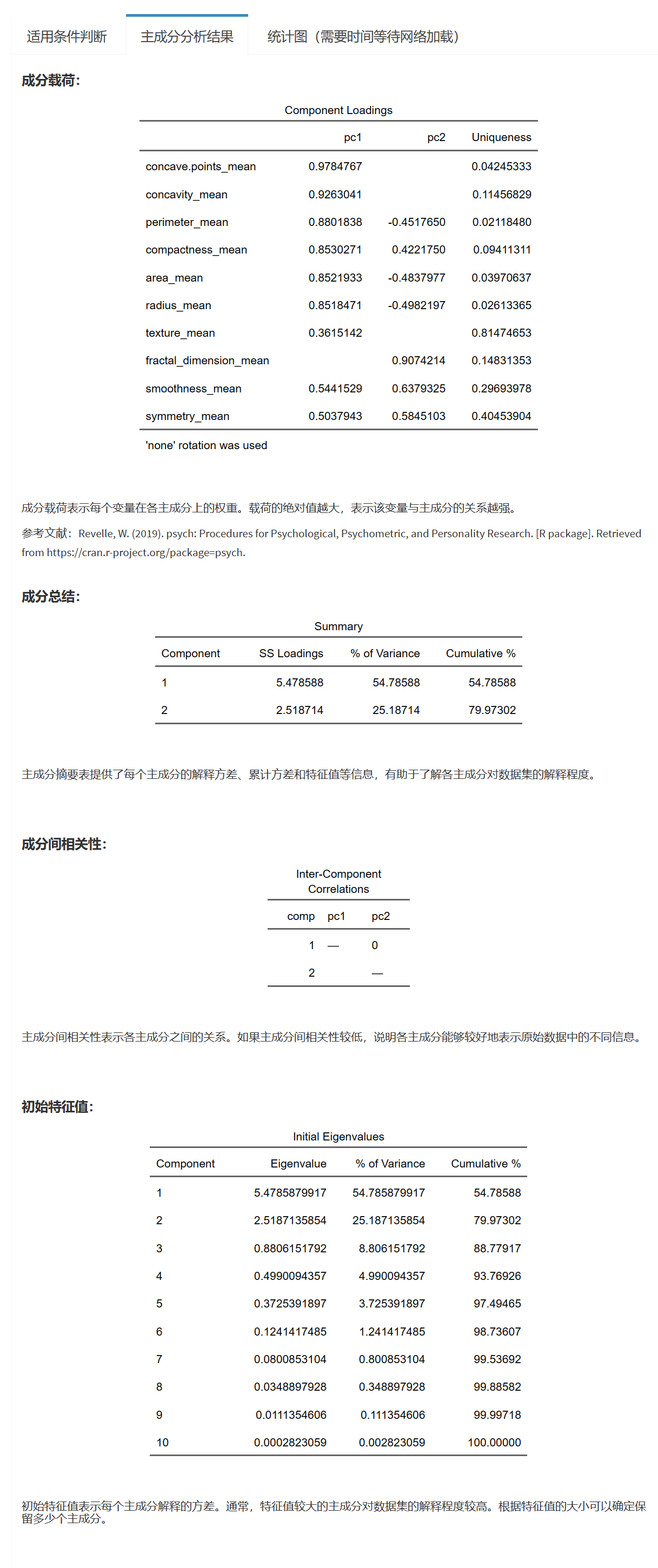 MSTATA统计软件的主成分分析模块提供了全面的PCA功能,包括: