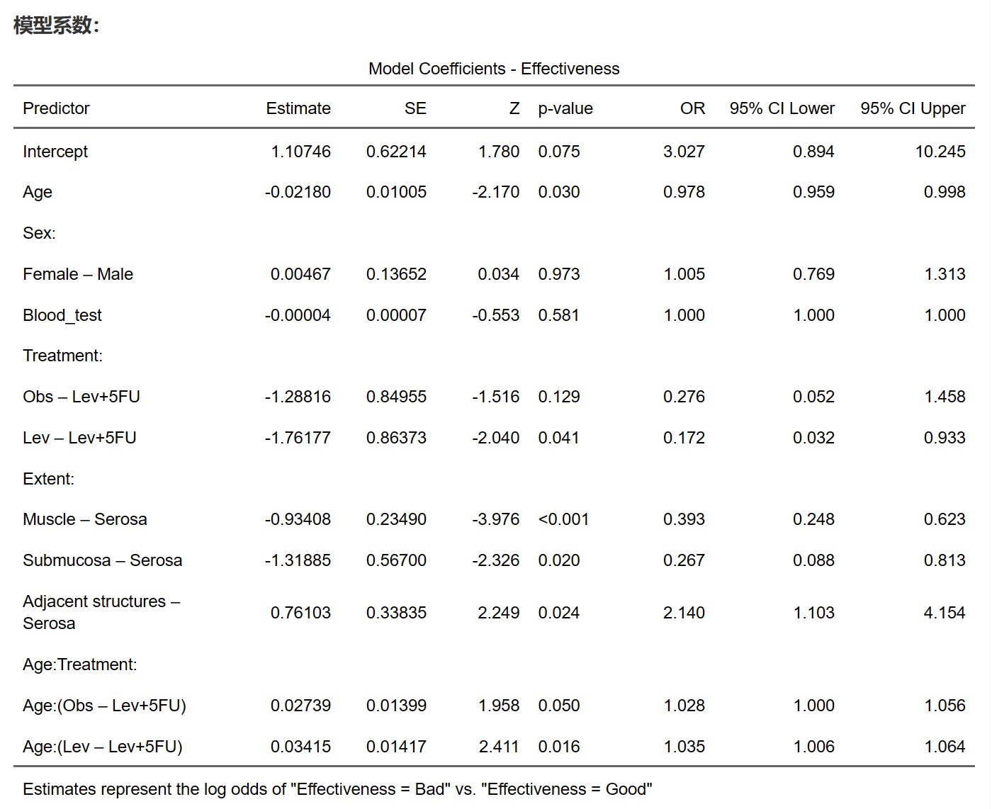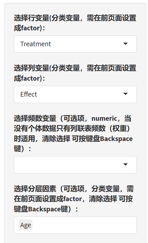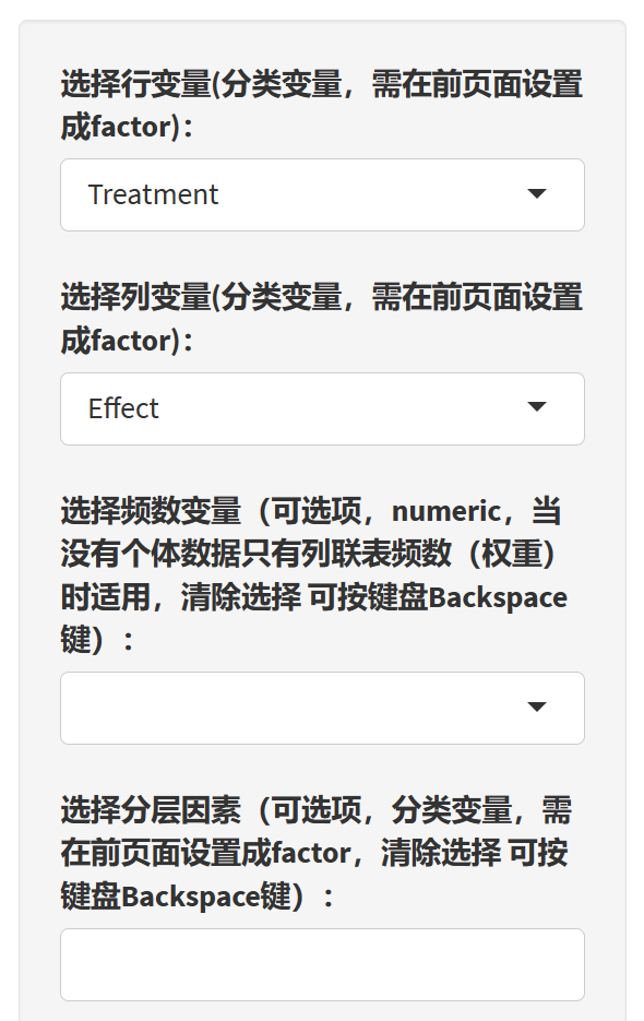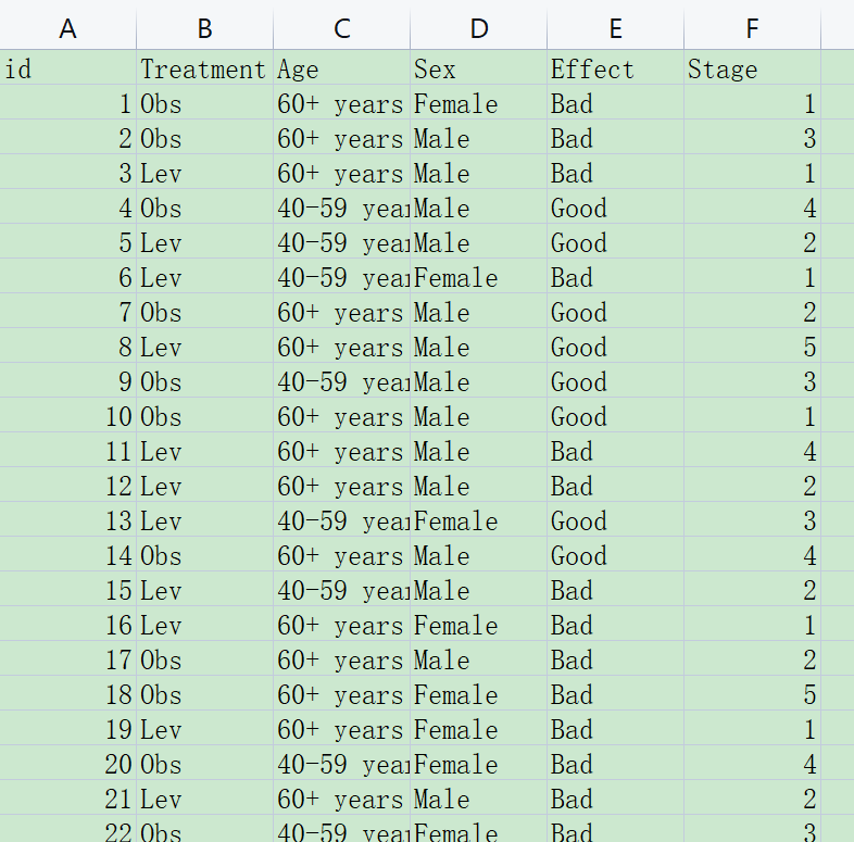 代表结局的应变量:例如上图中的Effectiveness,是一个二分类变量,代表疗效。