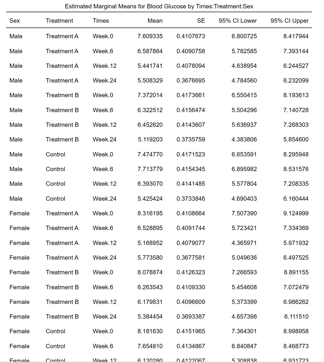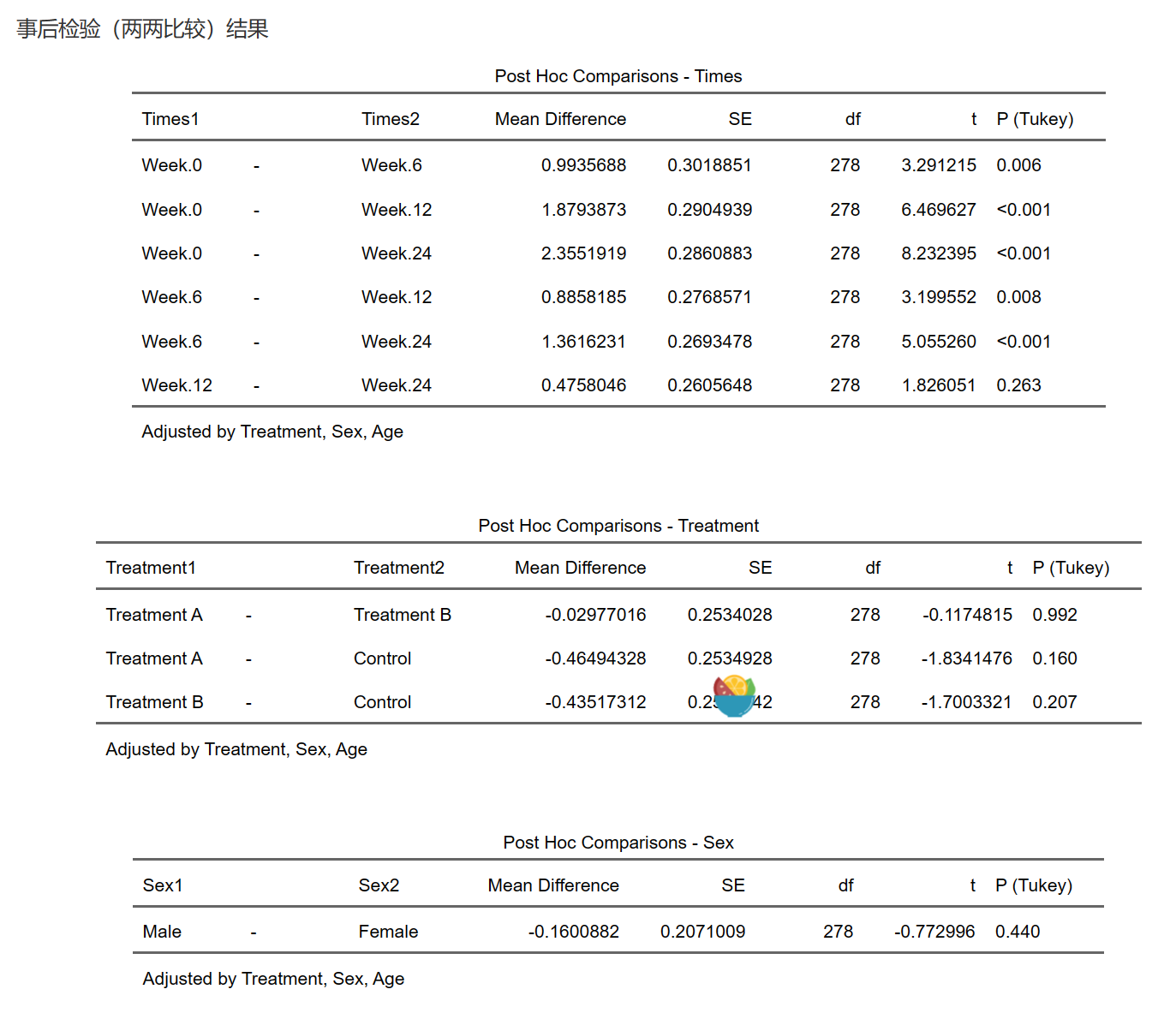 具体来说,我们可以假设每个患者都有自己的随机效应,这个效应对该患者所有的测量值都有影响。引入随机效应后,我们就可以在模型中同时考虑到个体间的差异(即随机效应)和治疗效应(即固定效应)。