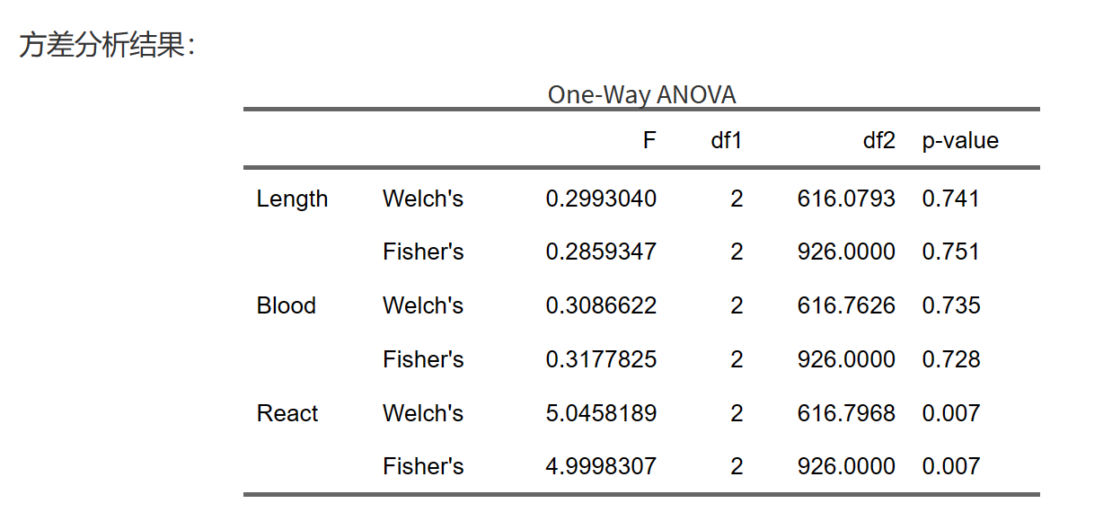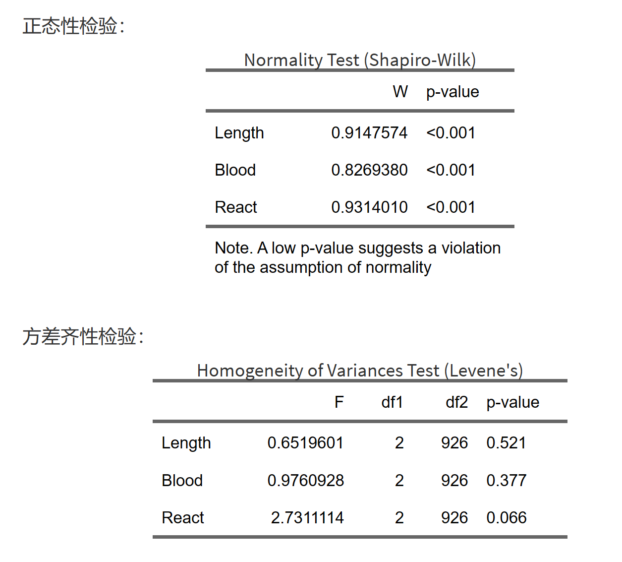 - Levene 方差齐性检验:检测两组方差是否相等;方差不齐时用 Welch’s t。