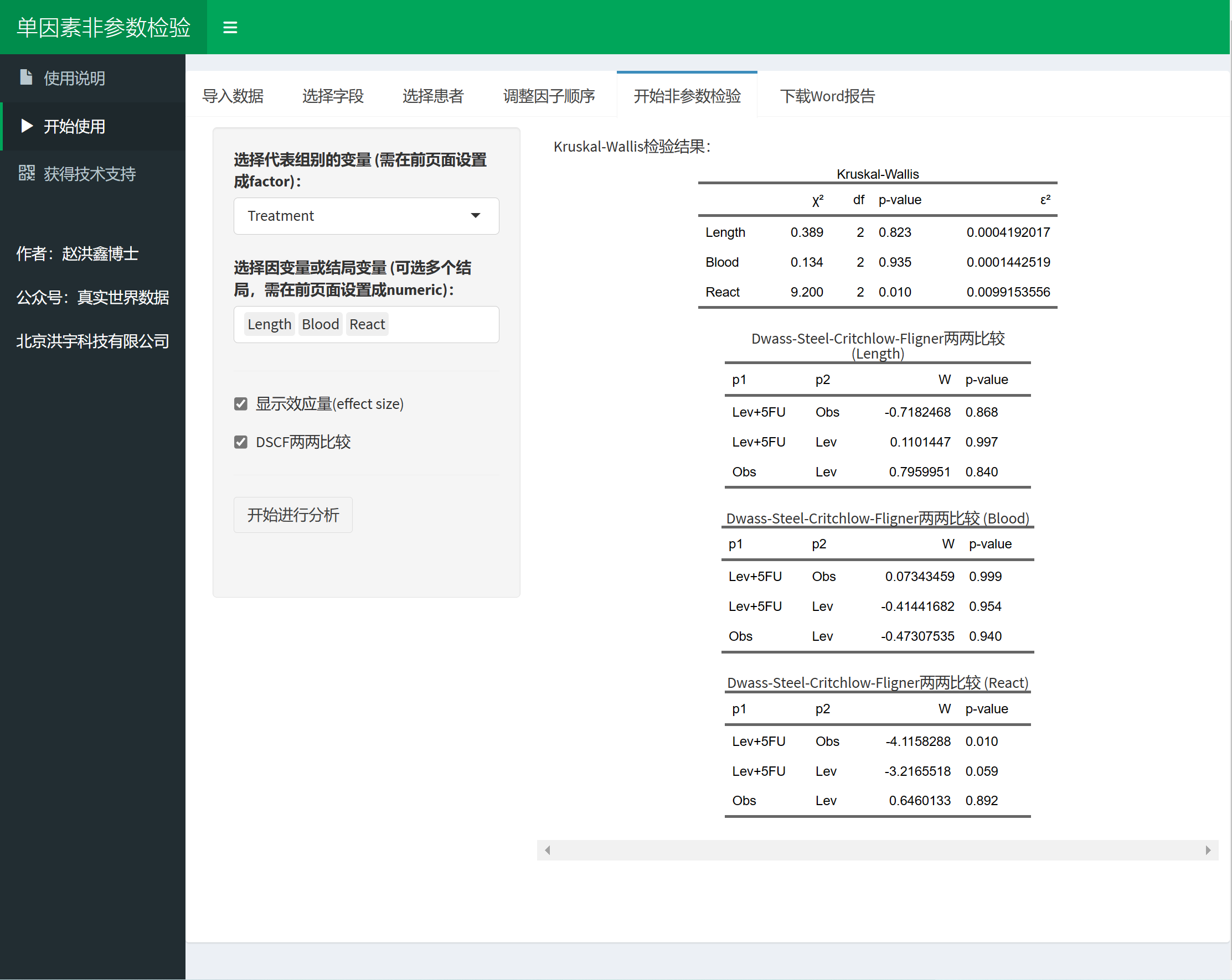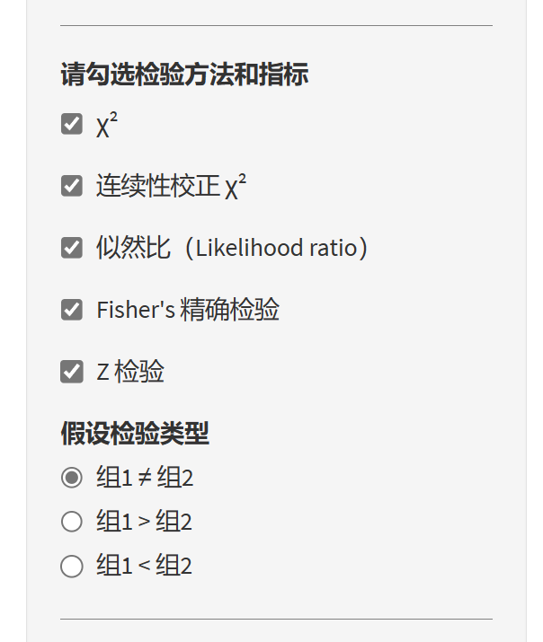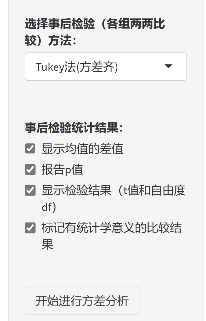 点击 “开始进行两组独立样本检验分析”。页面将依次显示: