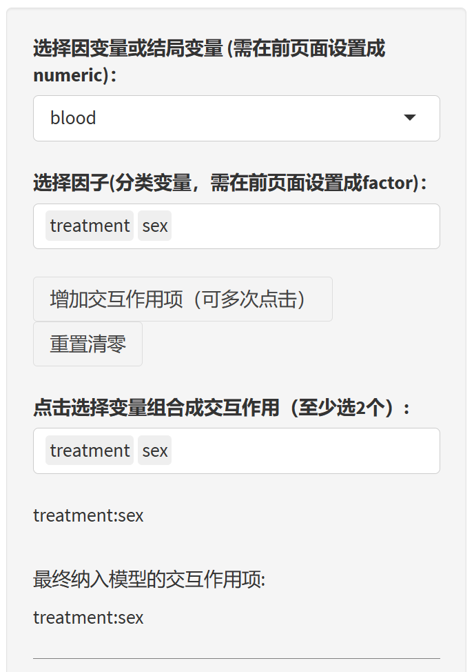 - 类型:Y 需是 numeric;Group 设为 factor 且只有两类。若 Group 目前有 3 类及以上,请在 “定义字段/调整因子顺序” 合并为两类。
