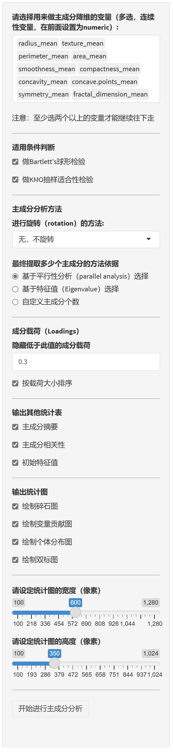 - 提供旋转(rotation)选项,以便更清晰地解释主成分。